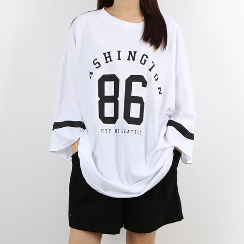 파라노말샵 / (투피스) 86 배색 오버핏 반팔 티셔츠 반바지 세트 빅