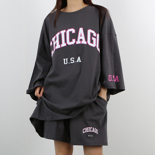 파라노말샵 / (투피스) 시카고 라운드 오버핏 반팔 티셔츠 반바지