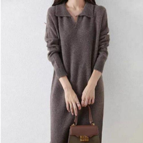 [오너클랜]인기상품 여성용 루즈핏 긴팔 카라 니트 원피스 롱 데일리 간절기 드레스 [WFLIFGX_260301]