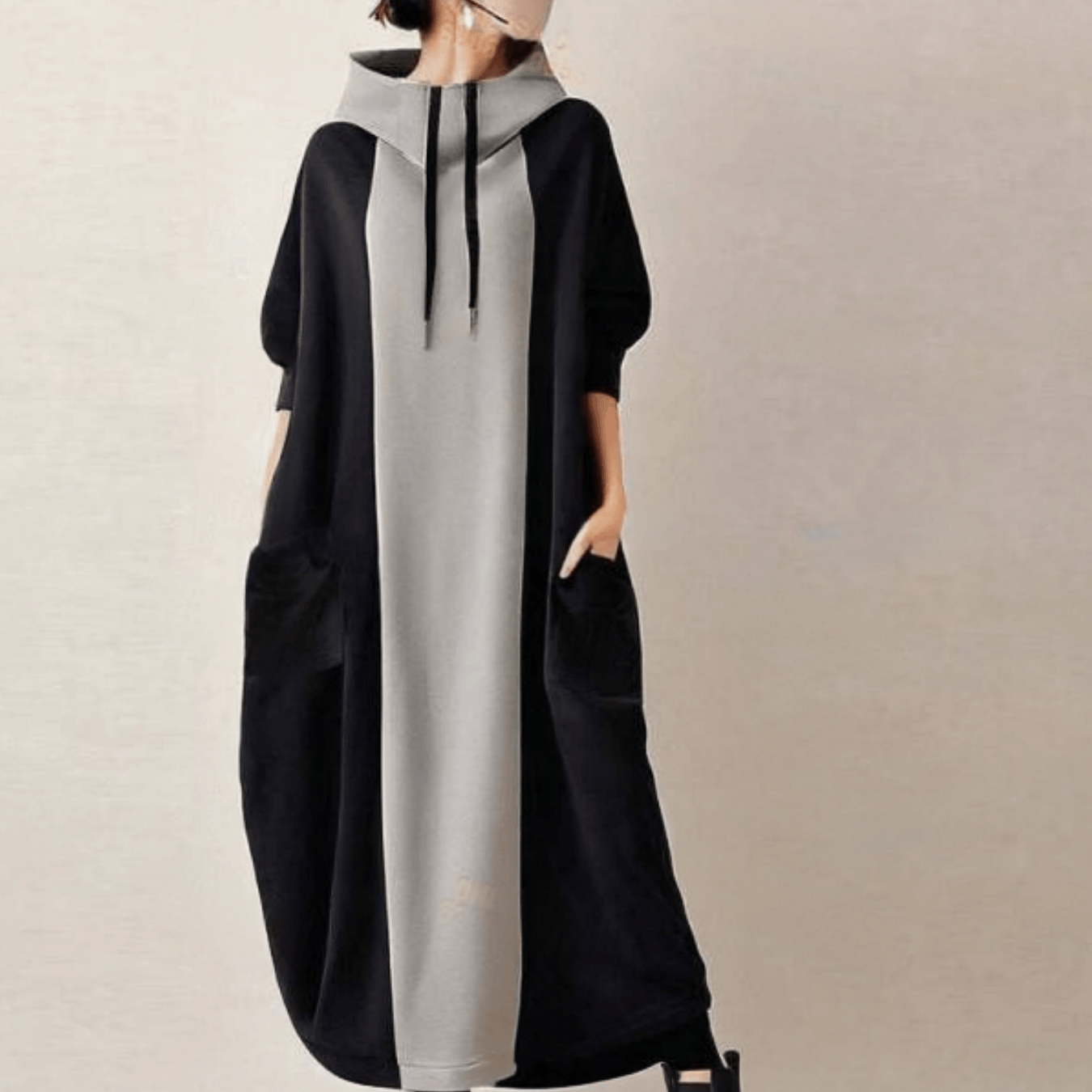 TEMU 2025 신상 하이넥 루즈 컬러 블록 드로스트링 드레스