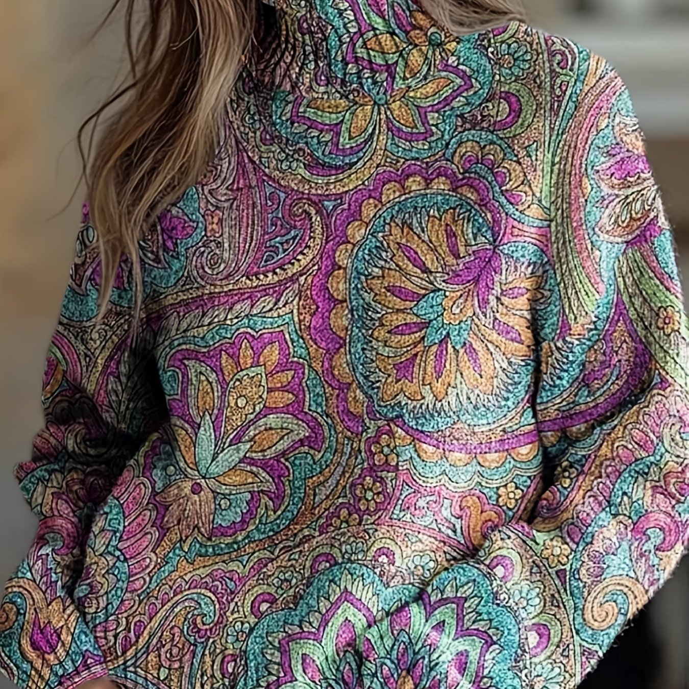 TEMU 프린트 디자인 - 텍스처 없는 가을/겨울 패션 신상 스타일리시 멀티핏 풀오버 하이넥 긴팔 여성 탑 플랫 디지털 프린트 트렌디 여성 스웨터