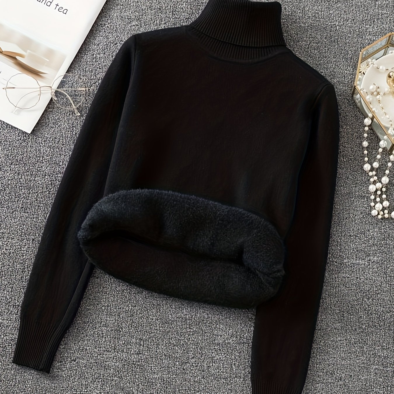 TEMU 여성용 가을/겨울 터틀넥 스웨터, 두꺼운 기모 안감, 몸매 보정, 따뜻한 상의