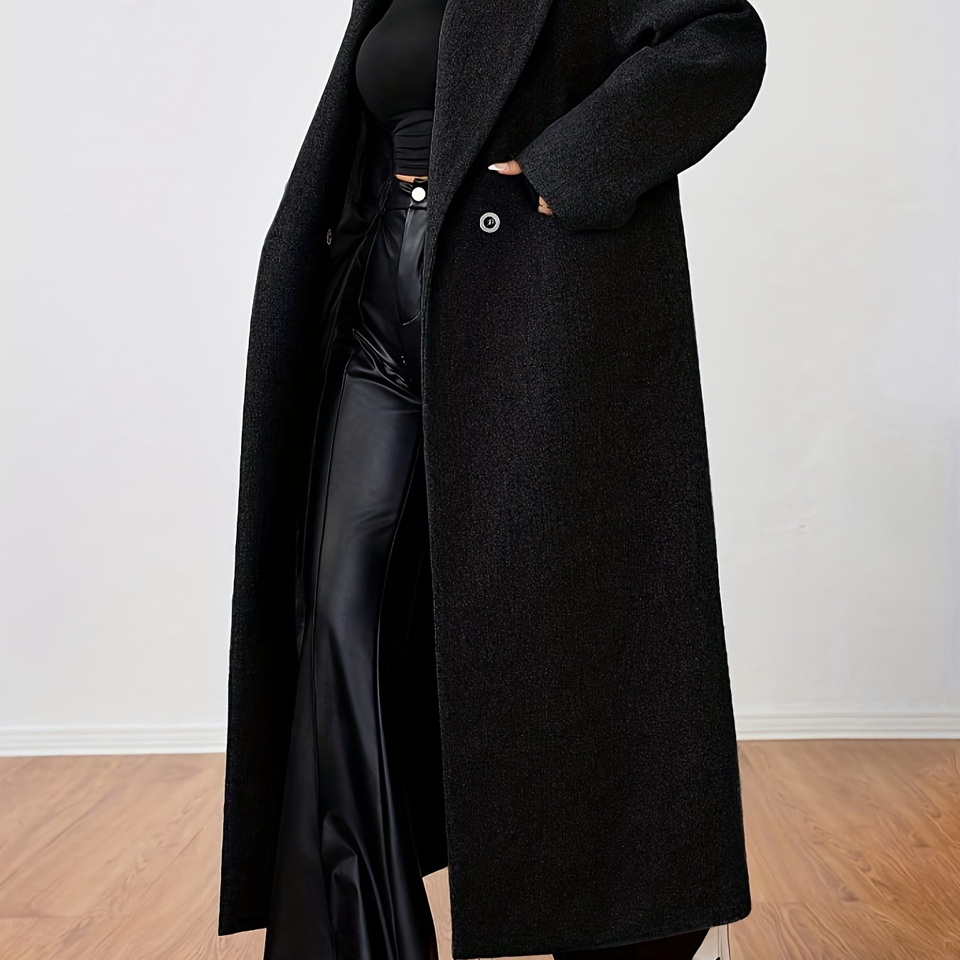 TEMU 여성용 가을 겨울 솔리드 컬러 더블 브레스트 롱 코트