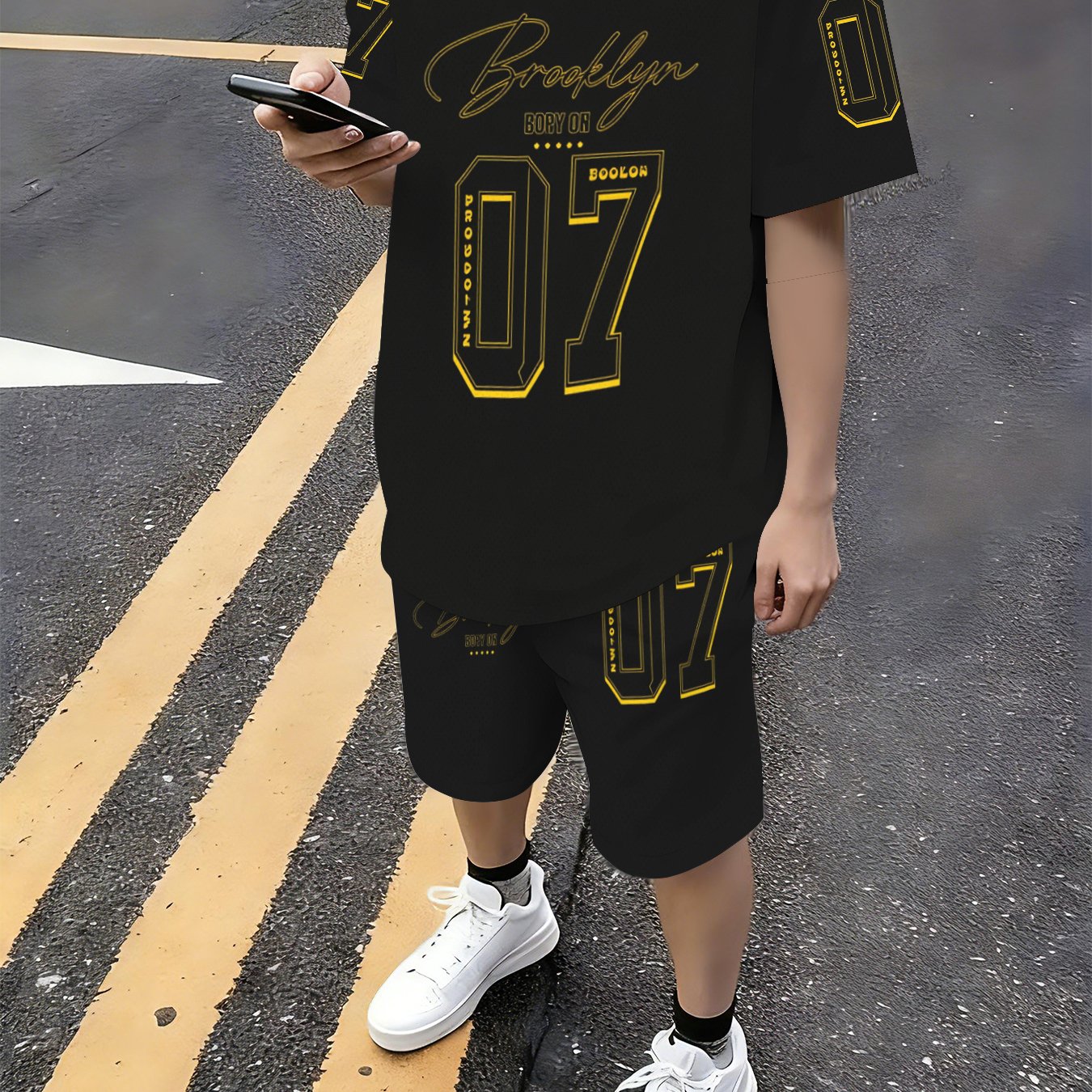 TEMU 청소년 패션 쇼츠 세트, 스타일리시 캐주얼 숫자와 글자 패턴, 봄 가을 여름 반팔 티셔츠와 루즈 쇼츠 2피스 세트, 남아용 패션 아웃도어 레저 세트, 야외 활동에 완벽, 청소년용