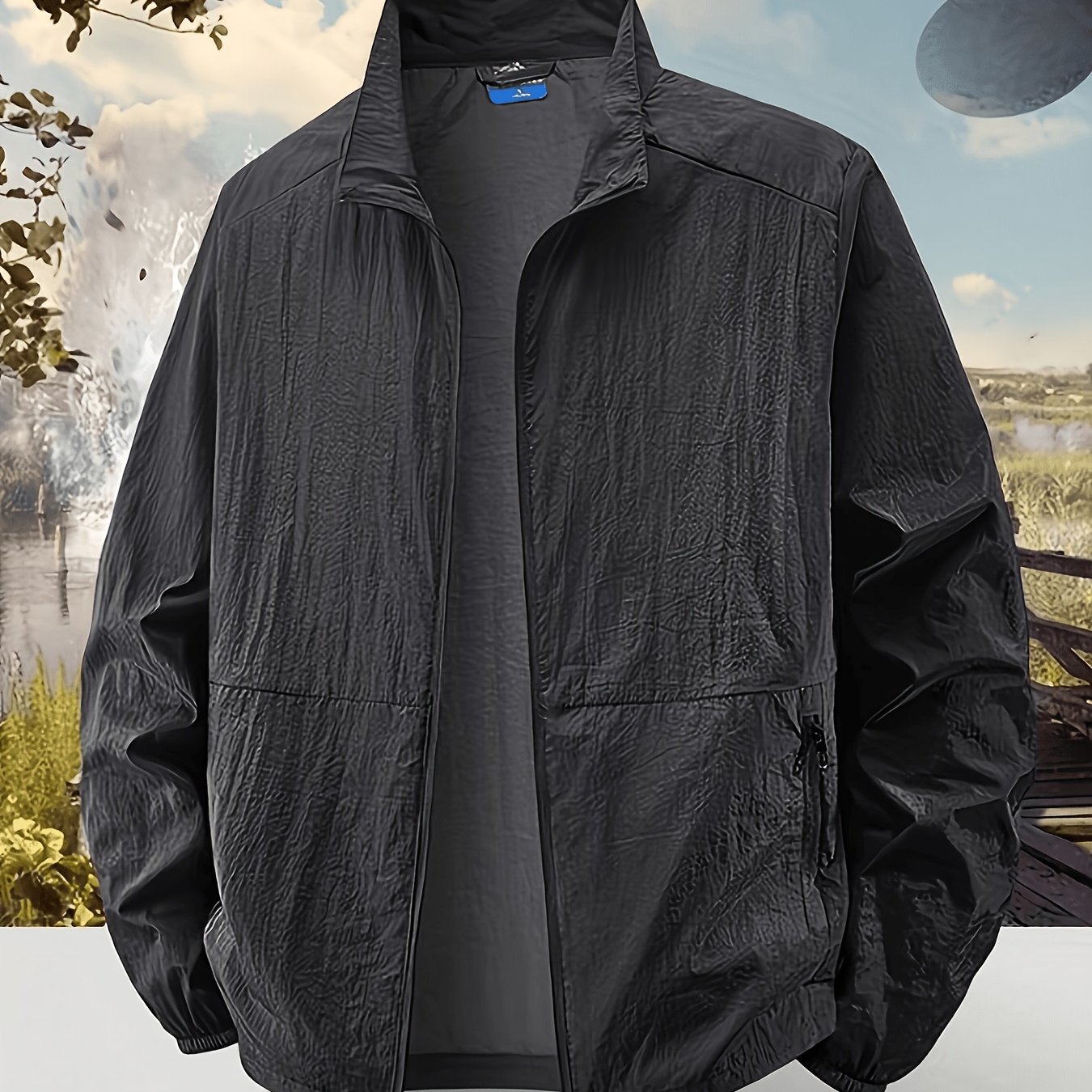 TEMU 남성용 경량 방풍 재킷 - 통기성 좋은 100% 나일론 원단, 스탠드업 칼라, 지퍼, 단색, 야외 활동에 적합