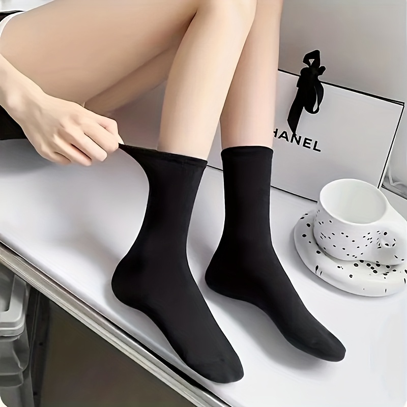 TEMU 여성용 미드 카프 양말 7켤레 | 부드럽고 통기성 좋은 봄/여름, 클래식 단색 (블랙/화이트), 요가, 헬스, 야외 및 캐주얼 웨어에 적합, 심플한 양말 디자인, 편안한 원단