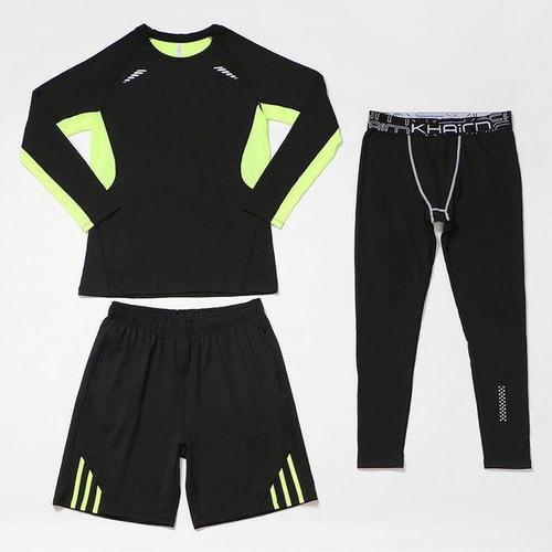 [에이치플러스몰]남성 기모 트레이닝복 상의+레깅스+반바지 3종세트(L)