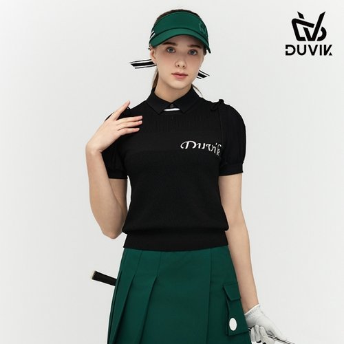 듀빅 여성 라운드 리본 패치 니트 베스트 DF2WSV246BK