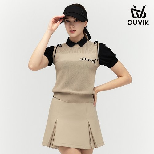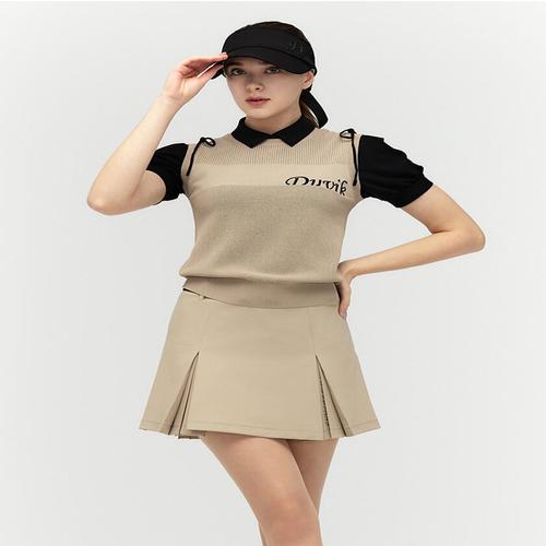 보스케 여성 봄 가을 골프웨어 골프 배색 리본 데일리 니트 조끼 L12402