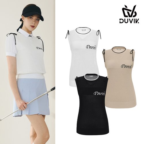 듀빅 여성 라운드 리본 패치 니트 베스트 DF2WSV246WH