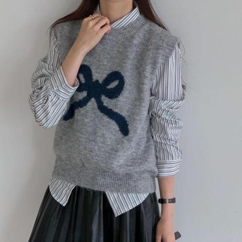 [다잇템]여자 러블리 가을데이트룩 리본 울 니트조끼