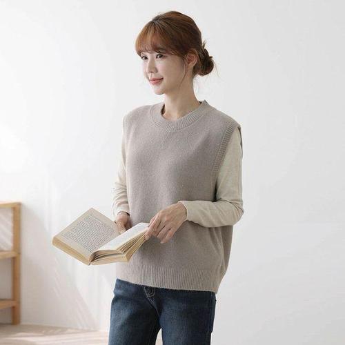 [유야]뒷 리본 끈 니트 조끼 베스트 -VE0057H- 여성 가을 겨울