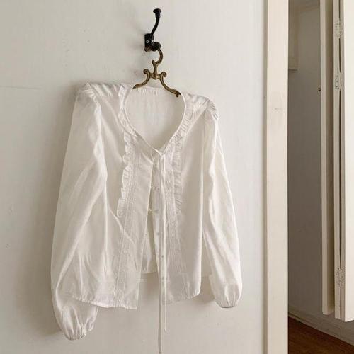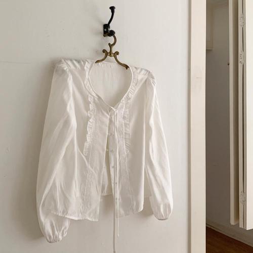 MOMOKA 레이스리본긴팔블라우스 레이스블라우스 리본블라우스