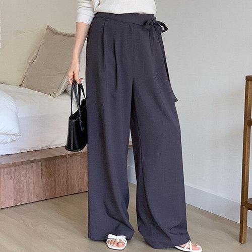 [옷자락] 여자 리본랩 루즈 핀턱 와이드 키큰녀 출근룩 슬랙스