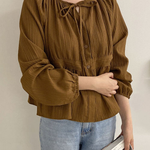 허니제이 / 세디아 셔링 주름 리본 블라우스(4color)