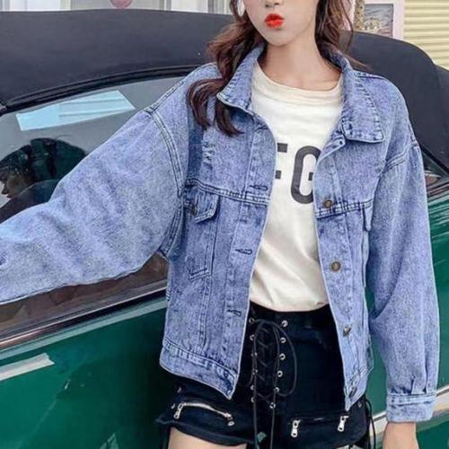 2 색 여성 캐주얼 진 코트 2025 봄 여성 데님 재킷 긴 소매 자른 여성 소녀 streetwear(N2418)