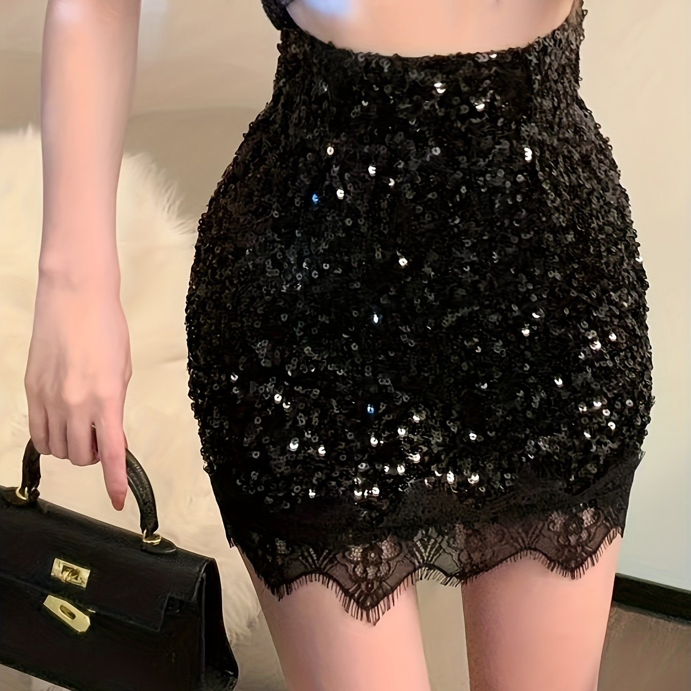 TEMU 여성용 반짝이 시퀸 & 레이스 숏 A라인 스커트 드레스 - 하이웨이스트 파티 웨딩 프롬 드레스, 숏 길이, 사계절 착용 가능 (신축성 없음, 손세탁 가능) - 솔리드 컬러 우아한 의상
