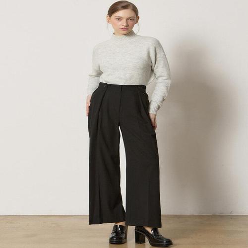 하이웨이스트 라인 디테일 와이드 팬츠 여성용 캐주얼 드레이핑 맥시 기장 모미 팬츠 니트 울 웜