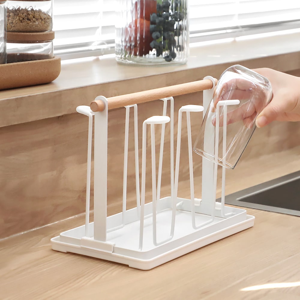 화이트 와이어 우드핸들 스탠드 컵꽂이