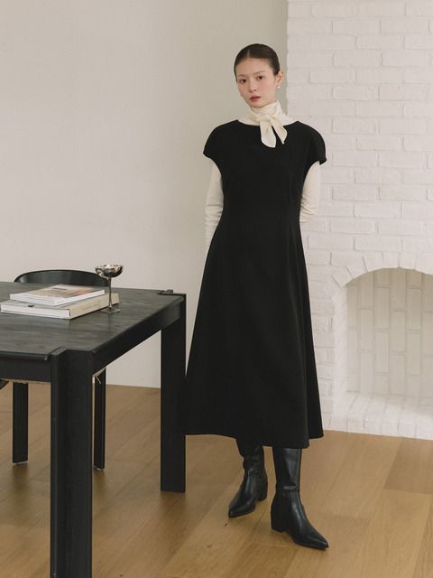 [리올그] 리올그 플레어 슬리브리스 원피스 블랙