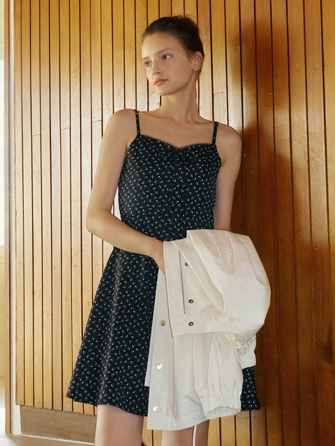 [리올그] 플라워 레이스 슬리브리스 미니 원피스 블랙