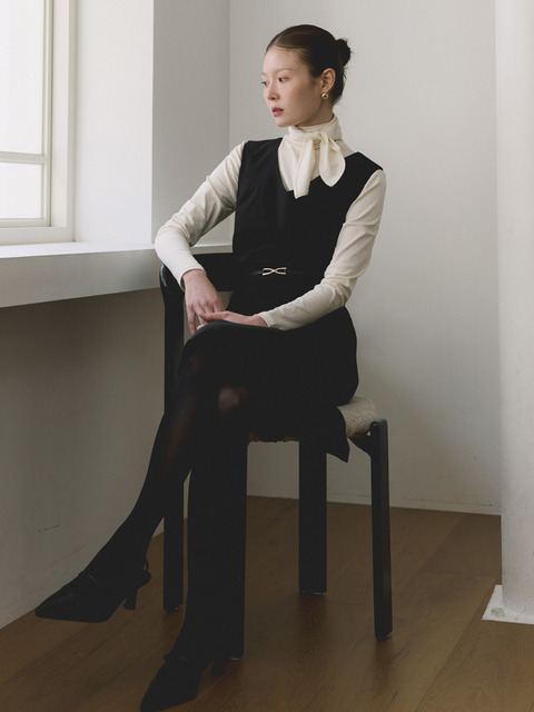 [리올그] 리올그 라운드 자켓 플레어 슬리브리스 셋업 원피스 블랙