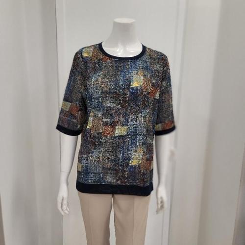 리우베 세이브존01 모자이크 패턴 반팔 블라우스 RBBT284
