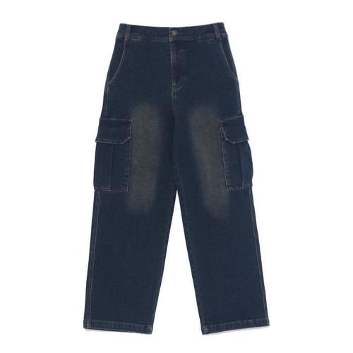 리트머스 HC34 여성 브러쉬 카고 와이드 DP 여성 카고 청바지, 여성 빈티