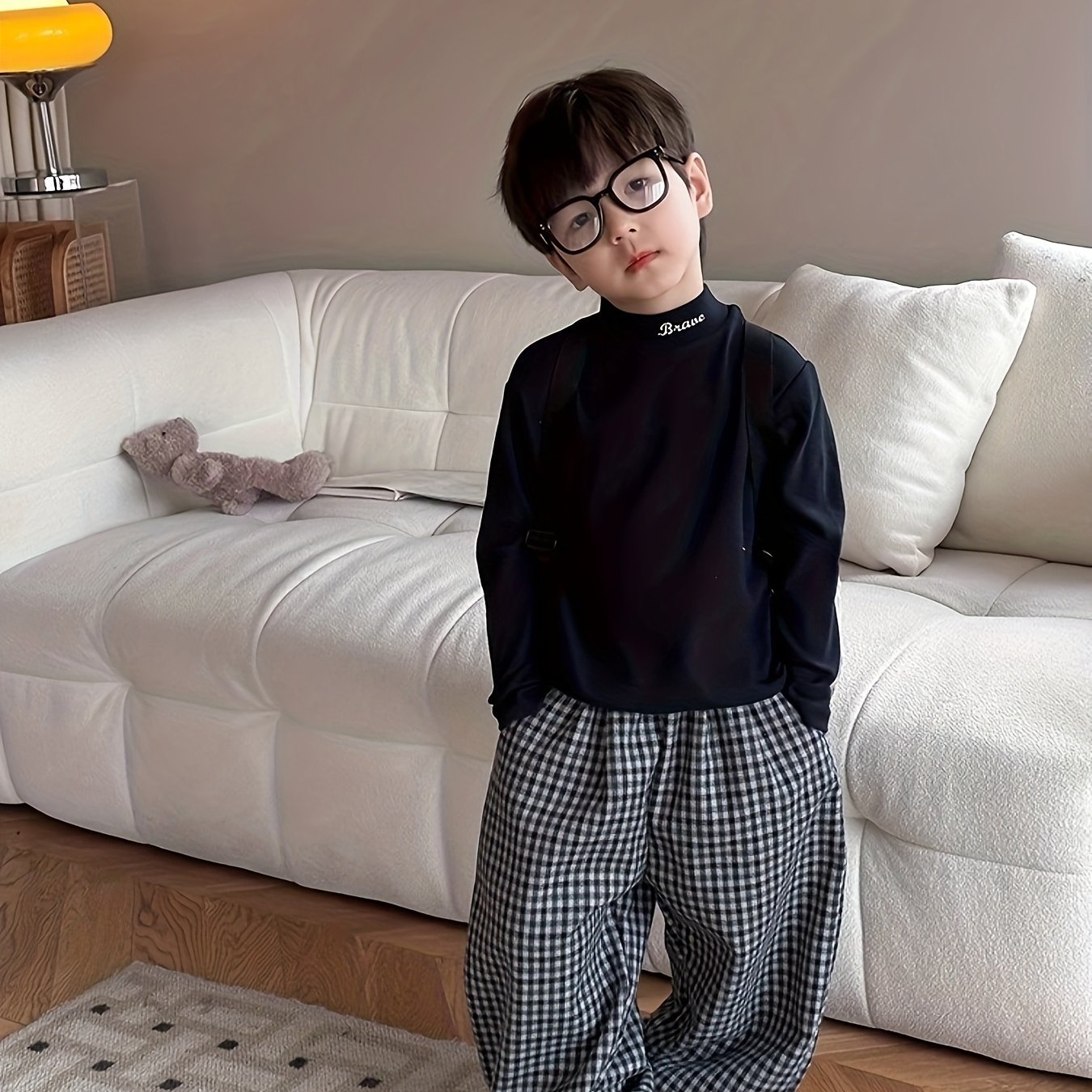 TEMU 소년용 스타일리시 긴팔 터틀넥 티 - 편안한 플리스 안감 겨울용 상의, 레이어링에 완벽