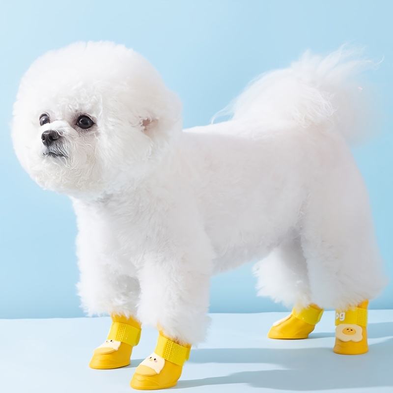 TEMU 실리콘 강아지 레인 부츠 | 튼튼하고 미끄럼 방지, 먼지 방지 발 커버, 만화 패턴, 소형견부터 중형견까지 적합, 손세탁만 가능