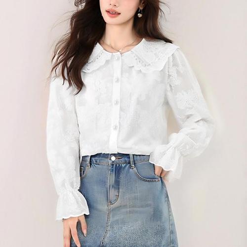 [페리엠]시스루 긴팔 여름 셔츠 백포인트 블랑리프셔츠