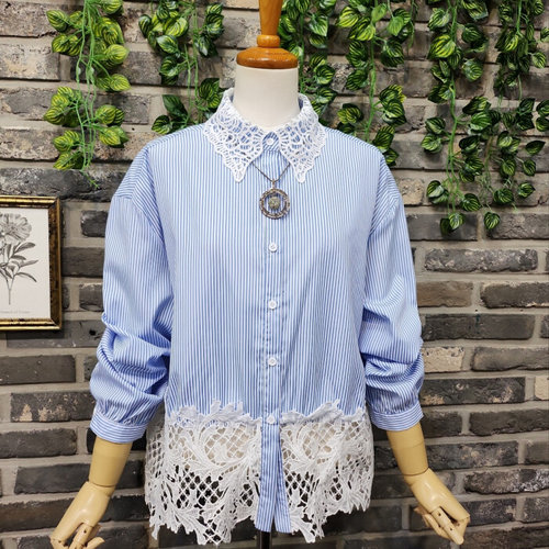 퐁당 / 밑단 리프 레이스 카라 블라우스