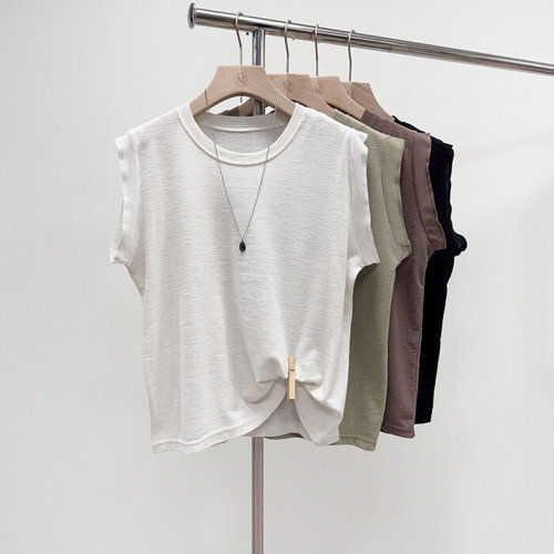 여자 민소매 티 셔츠 셔링 여름 빈지 린넨 블라우스 모시 나시 앤크 BE5