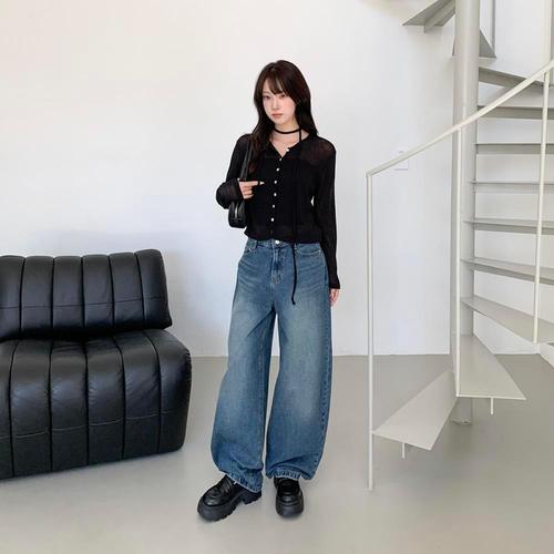 [옷자락] 여성 린넨 클래식 스판 크롭 단추 노카라 가디건