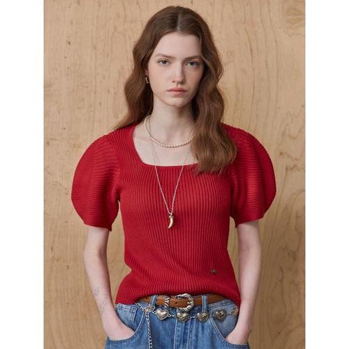 [마쟈]린넨혼방 스퀘어넥 퍼프소매 반팔 니트