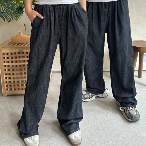 린넨 남성 와이드 데님 밴딩 팬츠 여름 데일리 바지 WFLMDLQ