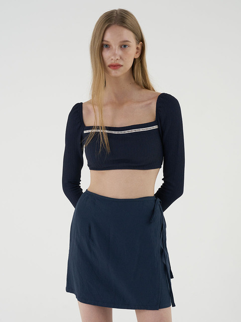 [르샵]레이스 트리밍 린넨 랩 스커트 BP8SK005A