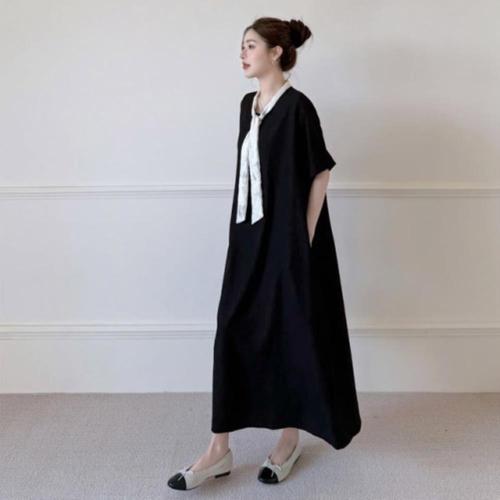 [오너클랜]인기상품 여성용 린넨 루즈핏 반팔 배색 롱원피스 여름 드레스 [WFLLBEI_260304]
