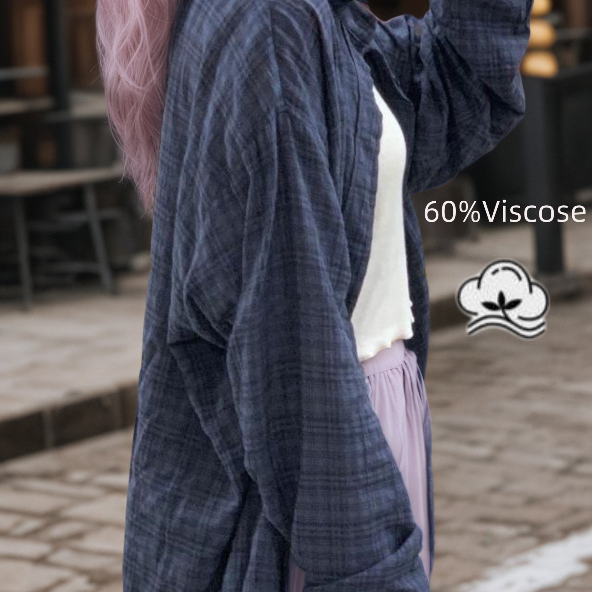 TEMU 플러스 사이즈, 2024 플러스 사이즈 여성용 네이비 블루 체크무늬 루즈 아우터웨어 셔츠 얇은 재킷