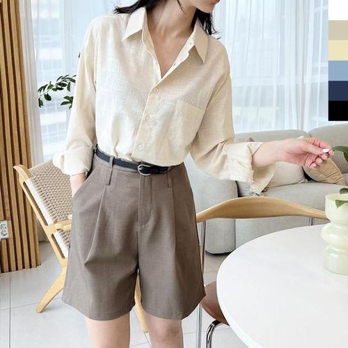 [신상오픈런]여성용 클래식 린넨 루즈핏 긴팔 셔츠 포켓 남방