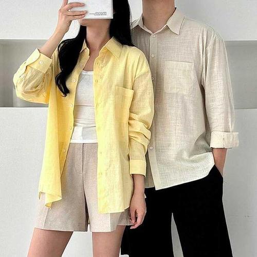 [셀러허브_여성트랜드패션]ONM 남여공용 오버핏 린넨 셔츠 커플룩 데일리 기본