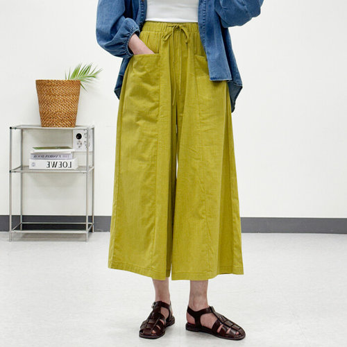 미즈큐즈 / 여름 린넨 밴딩 10부 와이드 팬츠 4color