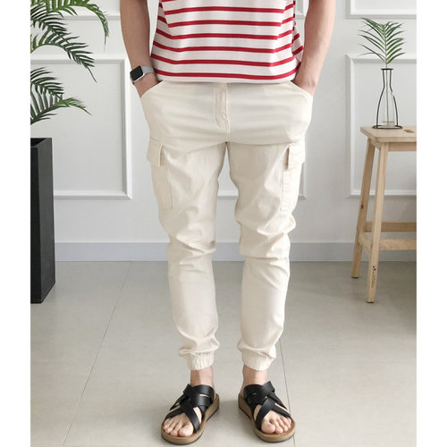 더제이엘 / 고급린넨 세미와이드 반밴딩 조거 카고 바지