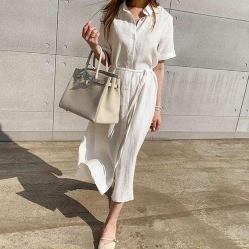 데일리룩리넨패브릭 버튼업 와이셔츠 드레스 레이디스 드레스 WFJIVZK