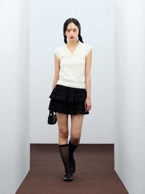 [비바브라운] 85-VIVA131 메이릴리 반팔 숏 슬리브 니트 아이보리
