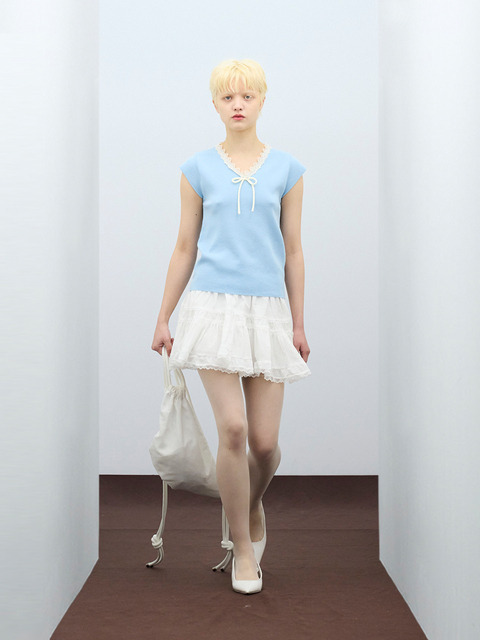 [비바브라운] 85-VIVA131 메이릴리 반팔 숏 슬리브 니트 스카이블루