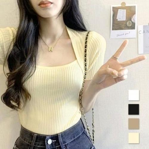 리리의감각 [1+1] 여성 유넥 크롭 셔링 반팔티셔츠