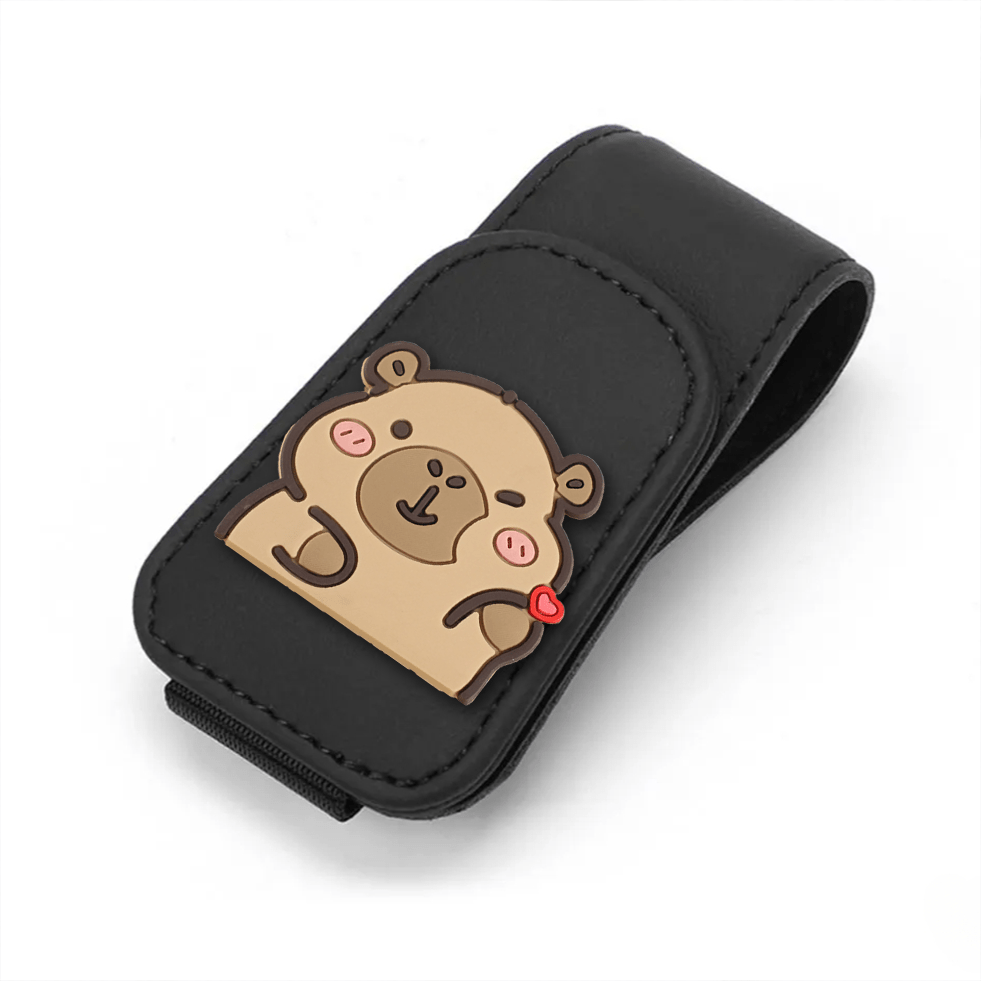 TEMU 카툰 카피바라 자동차 PU 가죽 안경 클립 1개, 귀여운 카피바라 디자인, 자동차 패션 안경 홀더, 다기능 자동차 선바이저 패션 안경 카드 클립