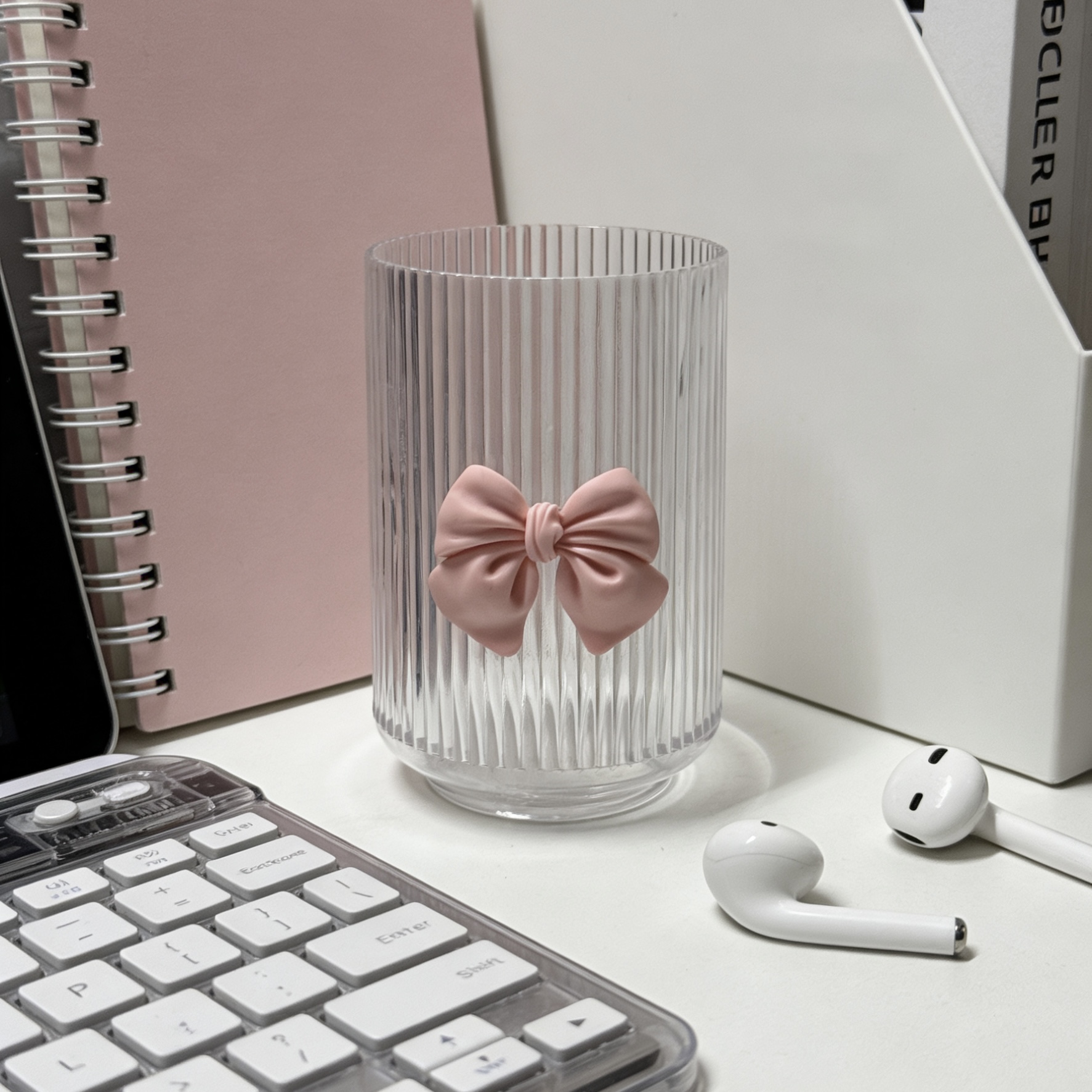 TEMU 투명 아크릴 메이크업 브러쉬 홀더 with 리본, 창의적인 화장품 보관통, 립스틱 & 펜 정리함, 데스크탑 장식용 화장품 보관함