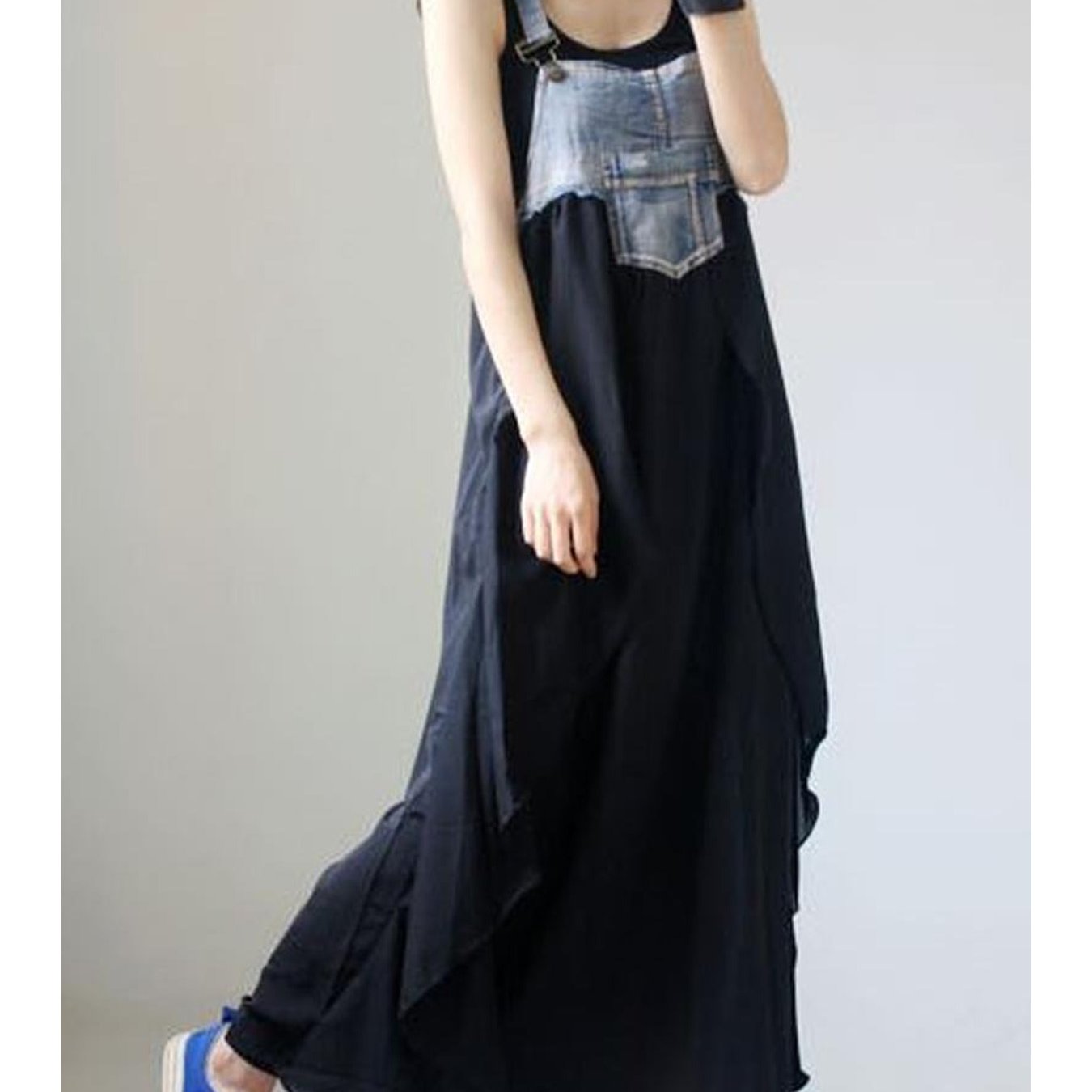 TEMU 2025 여름 신상 플러스 사이즈 루즈핏 캐주얼 롱 슬립싱 시폰 스트랩 데님 드레스